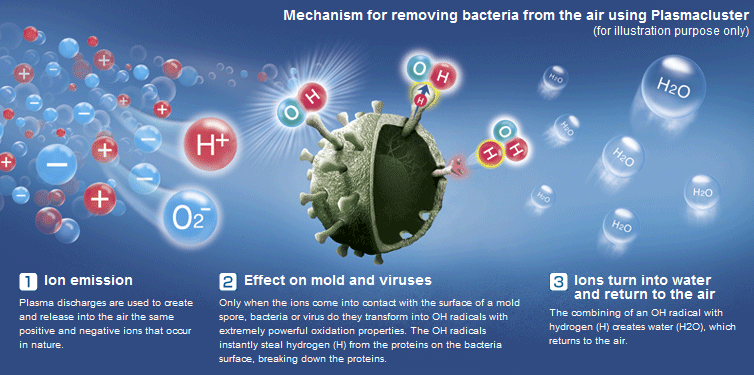 These air purifiers use a method called corona discharge to create charged molecules called ions. Most atoms in the air have a neutral charge. The corona discharge is a small but intense electrical field. Molecules passing through it will pick up an additional electron, giving the molecule a negative charge, or it may have an electron knocked off of it, giving it a positive charge.